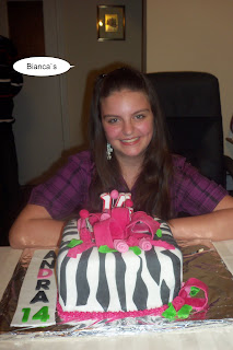 Pentru frumoasa mea nepoata Andra (fiica sorei mele) am facut azi un tort. A implinit varsta de 14 ani si a vrut un tort cadou (pachet) cu interior de ciocolata.