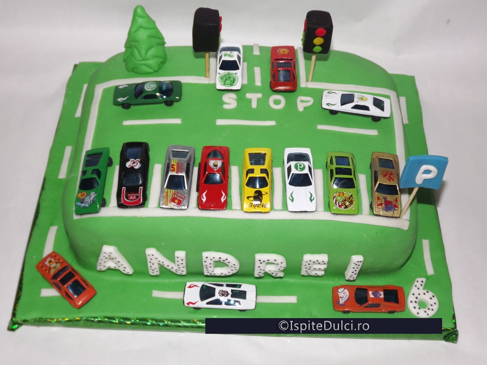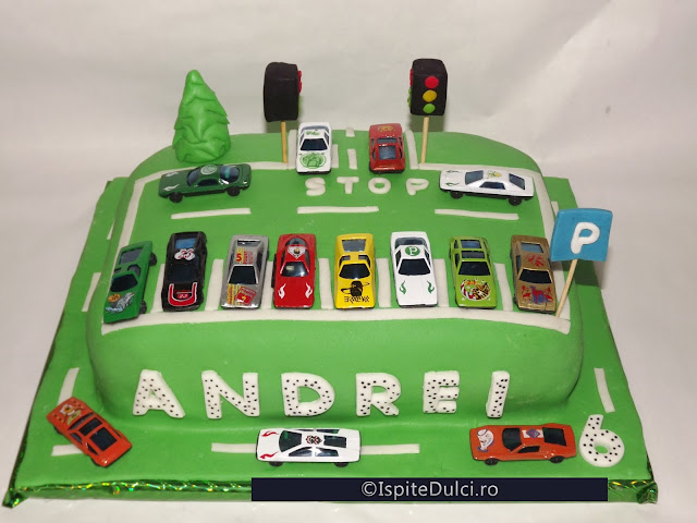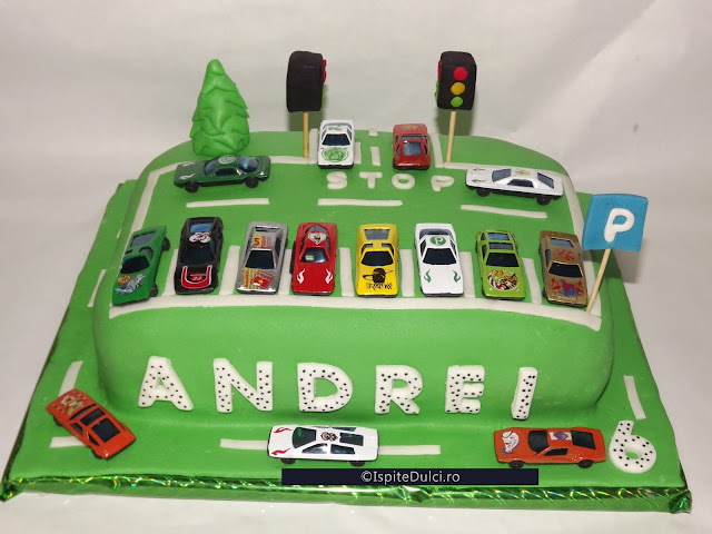 Pentru Andrei am pregatit anul acesta un tort parcare. Mama lui m-a rugat sa ii fac un tort parcare pe care sa pun 15 masinute..pentru fiecare copil invitat.