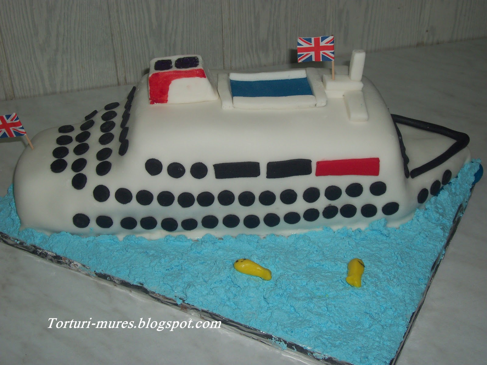 Am fost rugata de catre Radu sa fac un tort vas de croaziera pentru aniversarea unei domnisoare care a fost plecata ceva vreme pe vas de croaziera. Bineteles ca imi plac provocarile asa ca am acceptat.